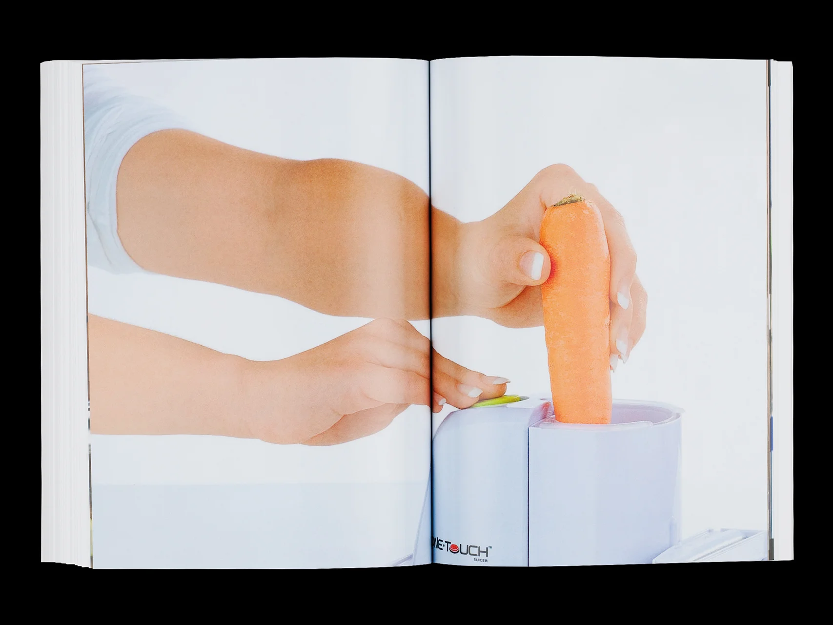 The book shows a collection of these utensils together with their advertising texts, consumer reviews, interviews, forum discussions and theoretical texts on consumerism. The images in the book are